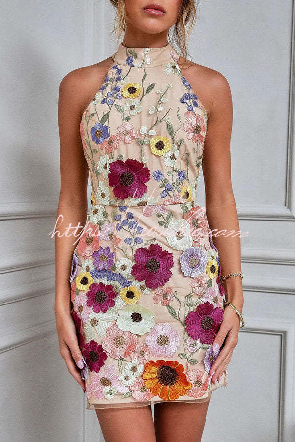 Wish Upon A Dream Floral Applique Halter Mini Dress