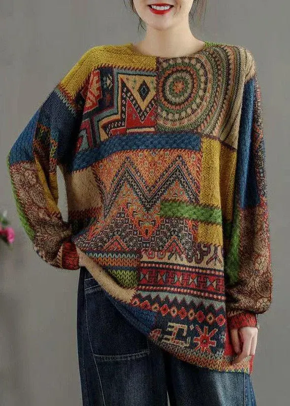 Women Multi Patchwork Cozy Mink Hair Knitted Sweaters Long Sleeve