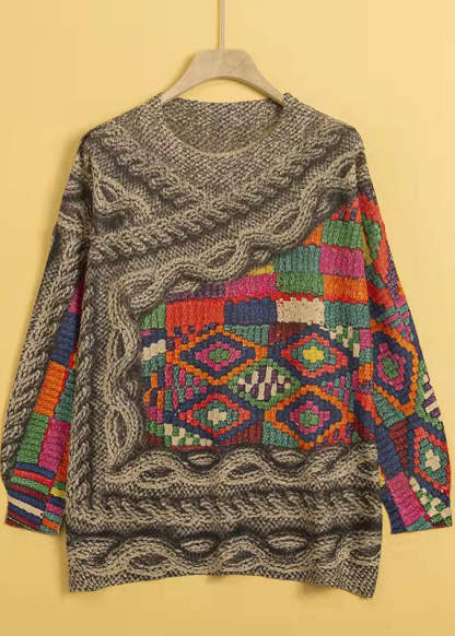 Women O-Neck Print Mink Hair Knitted Sweaters Winter