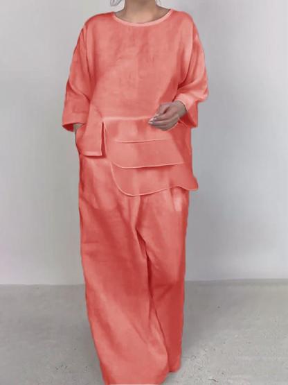 Women Plain Satin Three-pieces Set