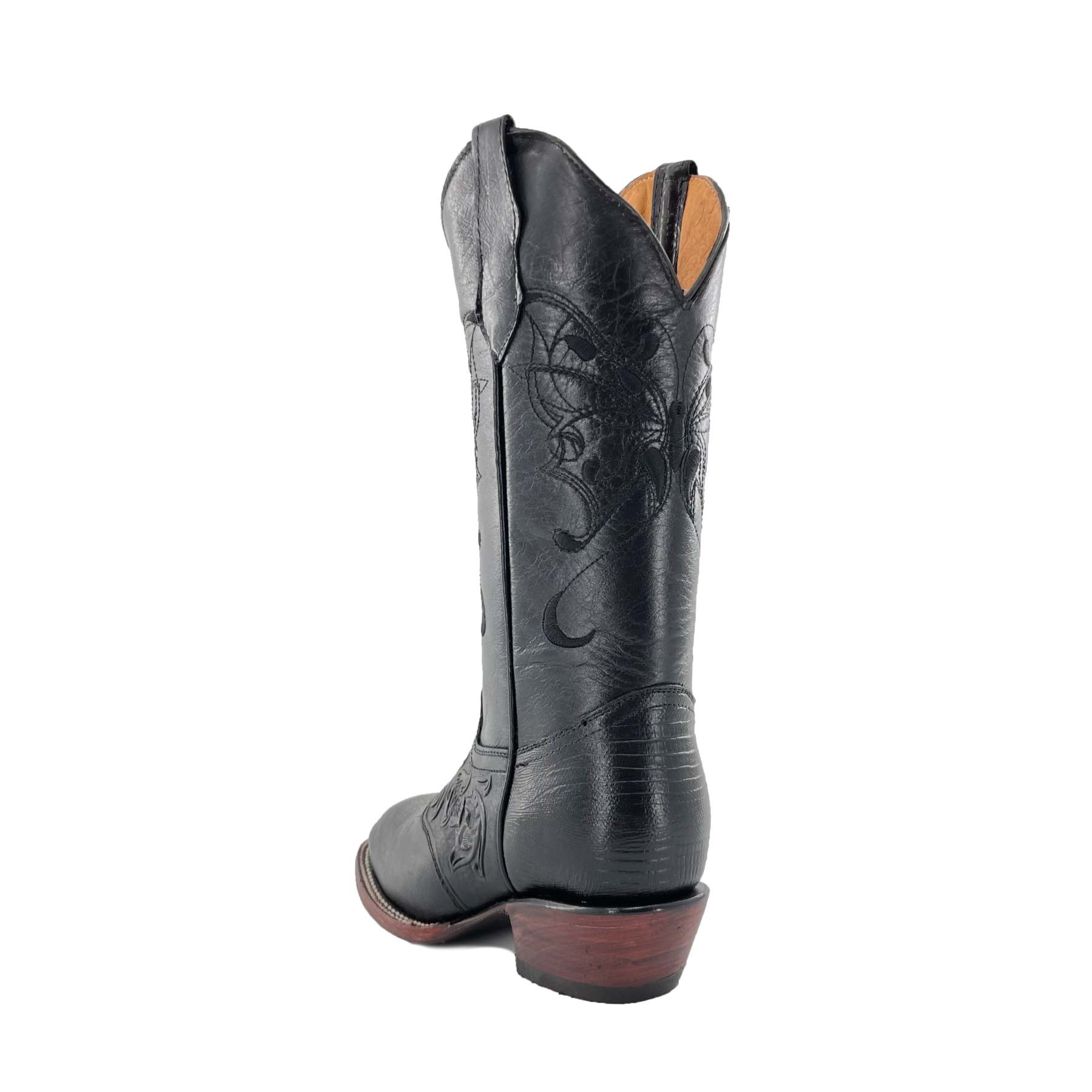 Women’s French Hand Tooled Black Boots - Black Print Lizard