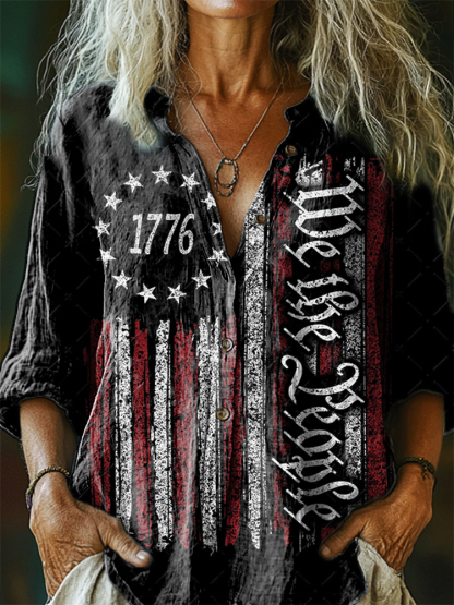 Women's 1776 Pattern Art Print Casual Cotton Linen Shirt