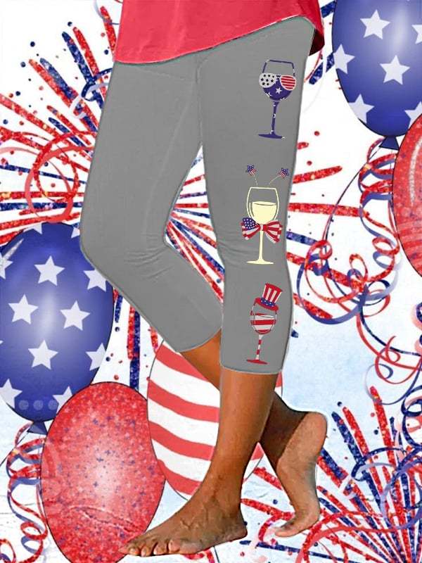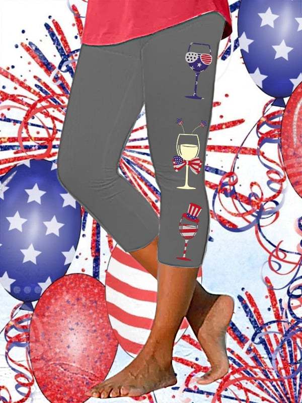 Women's 4th of July Red Wine Glass Print Cropped Leggings