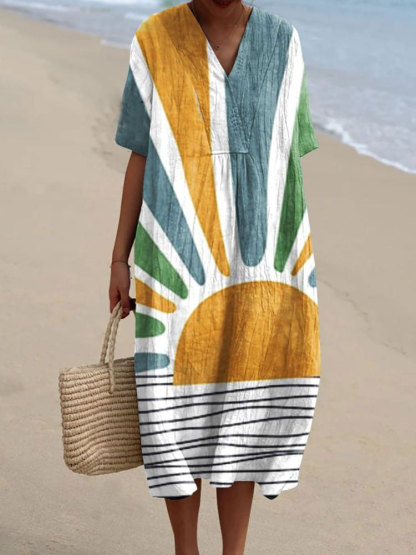 Women's Abstract Geometric Art Print Casual Flowy Dress
