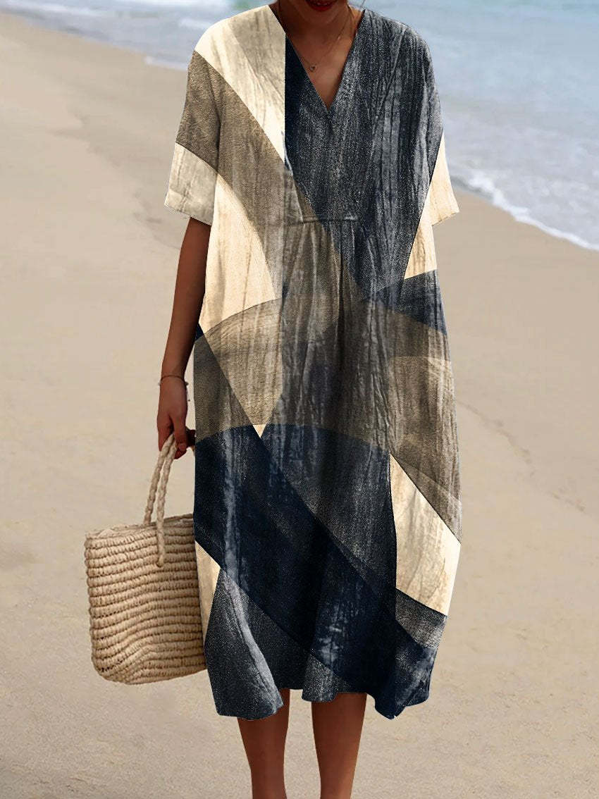Women's Abstract Vibrant Bold Fun Colorful Geometric Stripes Art Print Flowy Dress