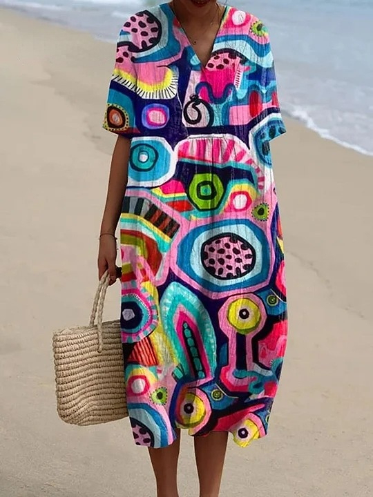 Women's Abstrct Colorful Art Cartoon Pattern Art Print Flowy Dress