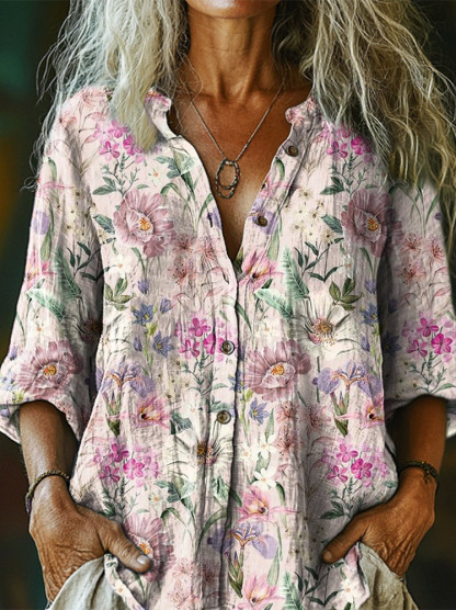 Women's Art Floral Hippie Vintage Print Long Sleeve Shirt