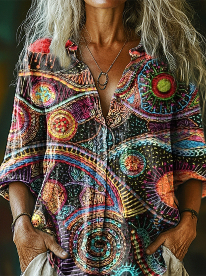 Women's Art Painting Colorful Floral Print Long Sleeve Shirt