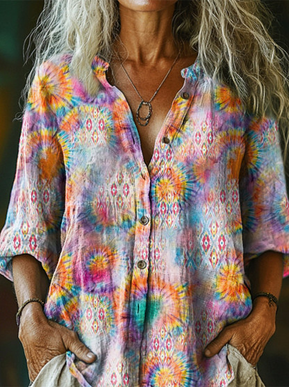 Women's Art Painting Funny Animal Hippie Retro Print Long Sleeve Shirt