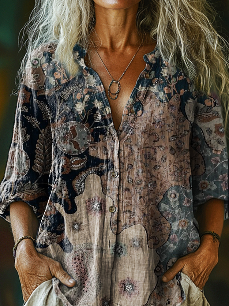 Women's Art Painting Hippie Print Long Sleeve Shirt