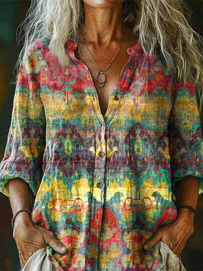 Women's Art Painting Hippie Print Long Sleeve Shirt