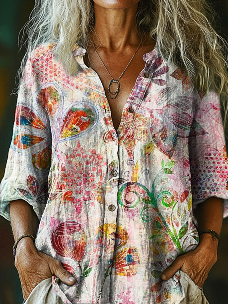 Women's Art Painting Hippie Print Long Sleeve Shirt