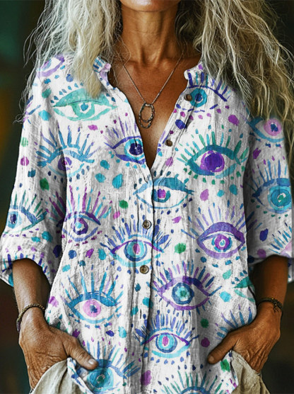 Women's Art Painting Hippie Vintage Print Long Sleeve Shirt