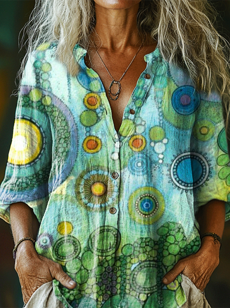 Women's Art Painting Nature Floral Print Long Sleeve Shirt