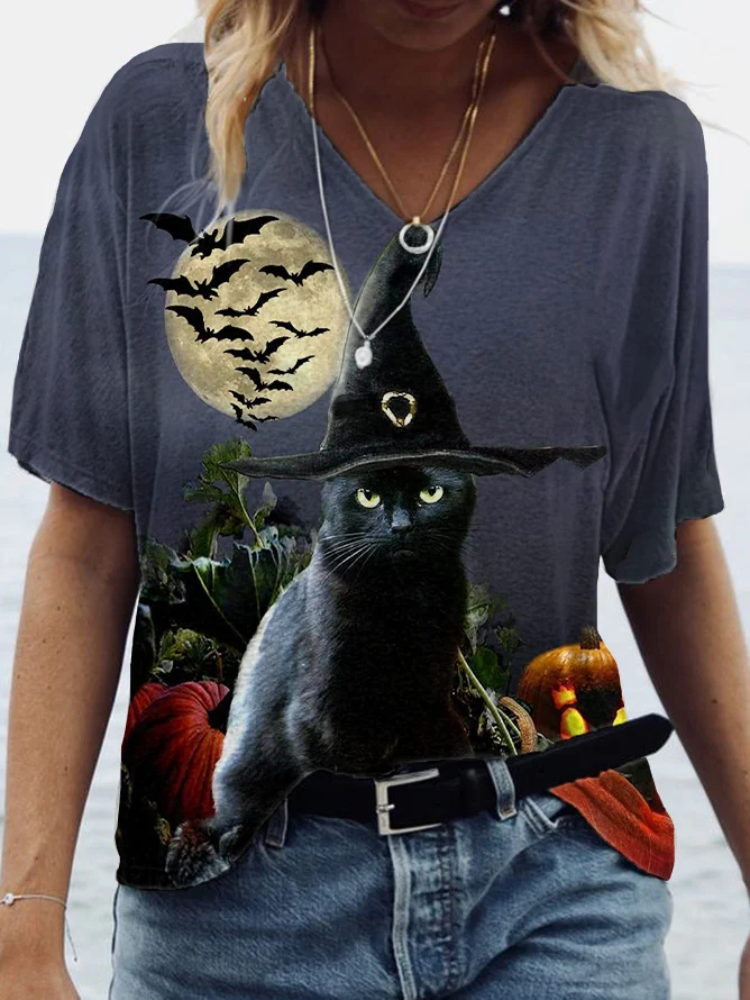 Women's Black Cat Casual T-Shirt