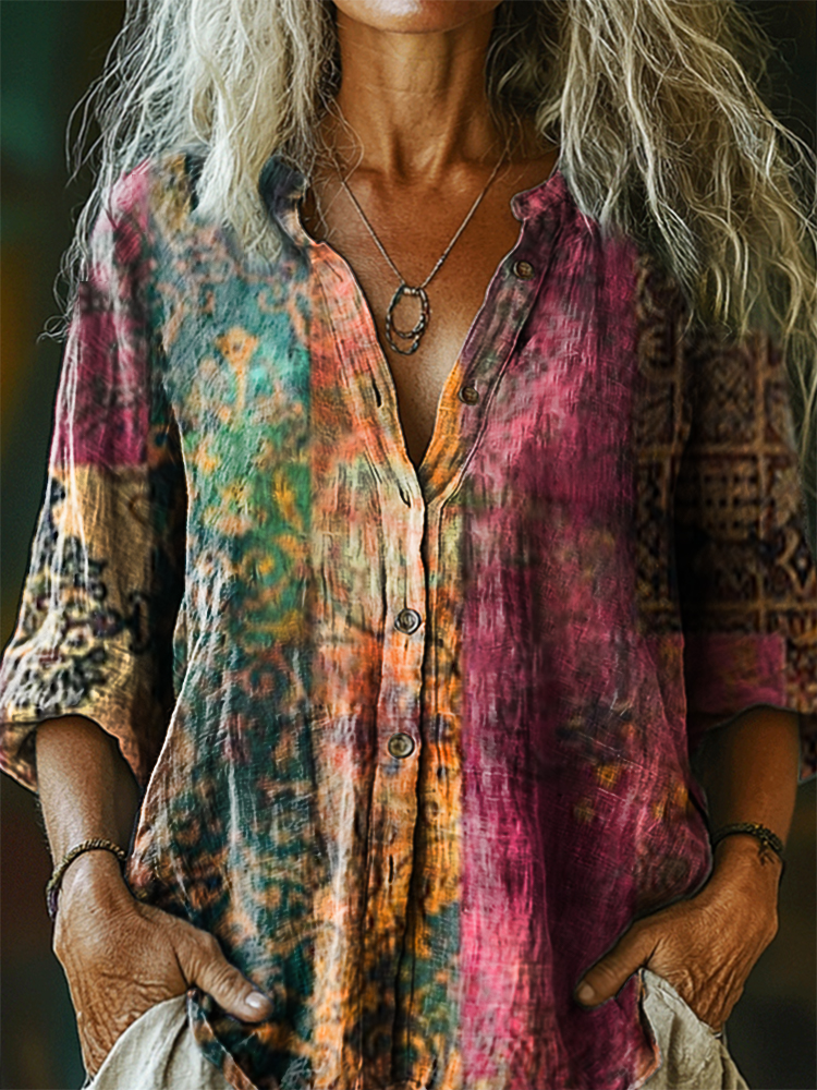 Women's Bohemian Floral Patterns Art Print Casual Cotton Linen Shirt