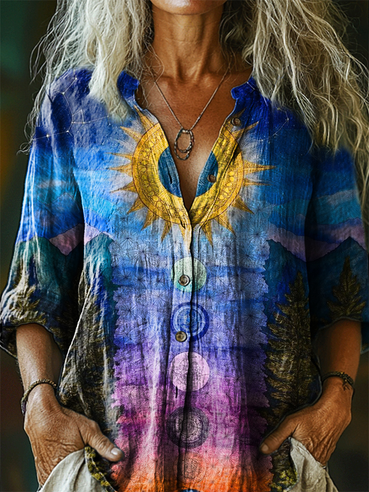 Women's Bohemian Pattern Art Print Casual Cotton Linen Shirt