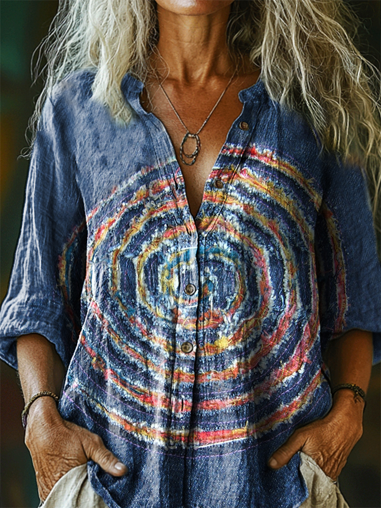 Women's Bohemian Patterns Art Print Casual Cotton Linen Shirt