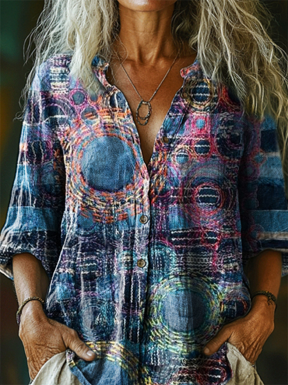 Women's Bohemian Patterns Art Print Casual Cotton Linen Shirt