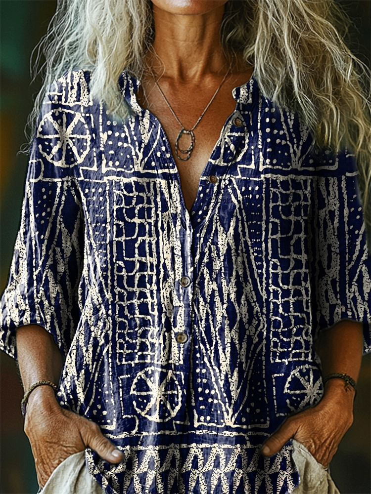 Women's Bohemian Patterns Art Print Casual Cotton Linen Shirt