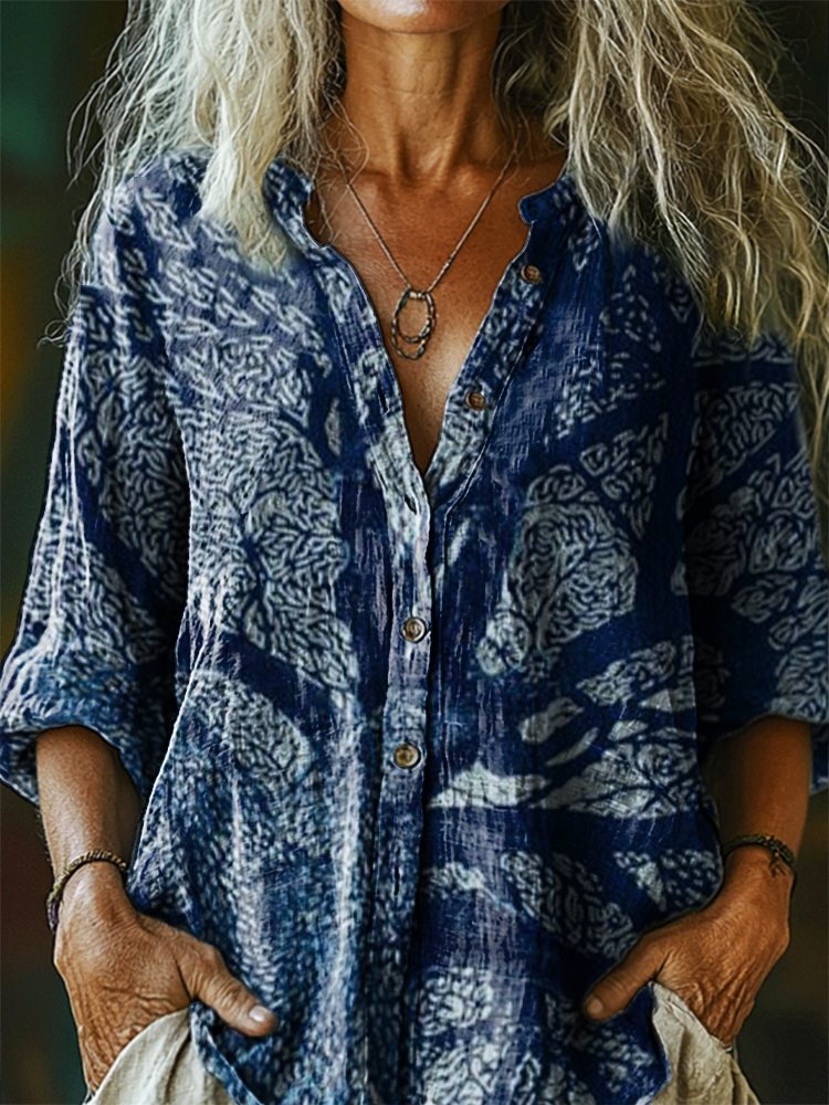 Women's Bohemian Tree Art Print Casual Cotton Linen Shirt