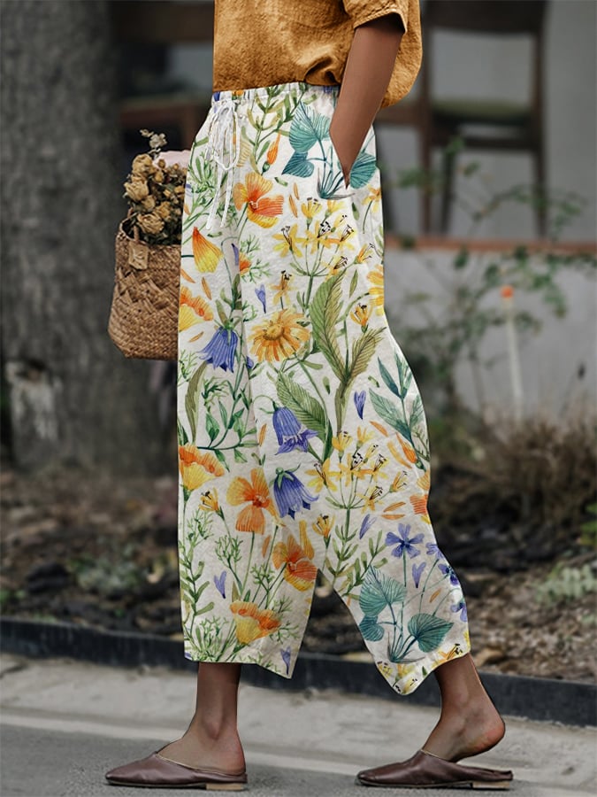 Women's Botanical Floral Design Print Lace-Up With Elastic Waist Loose Casual Pants