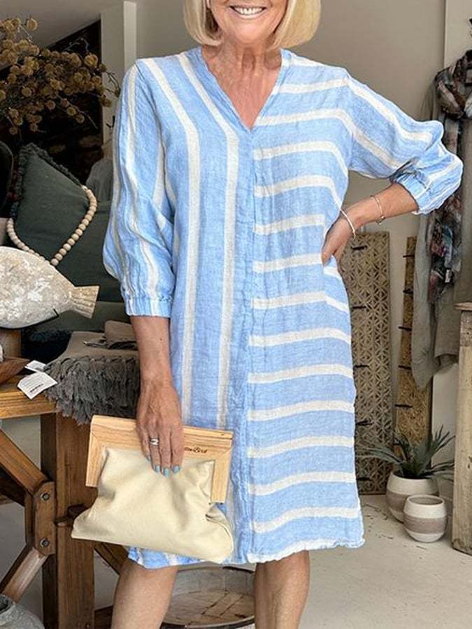 Women's Casual Elegant 3/4 Sleeve Cotton And Linen Dress