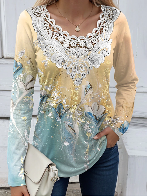 Women's Casual Lace Art Graphic Print Long Sleeve Top