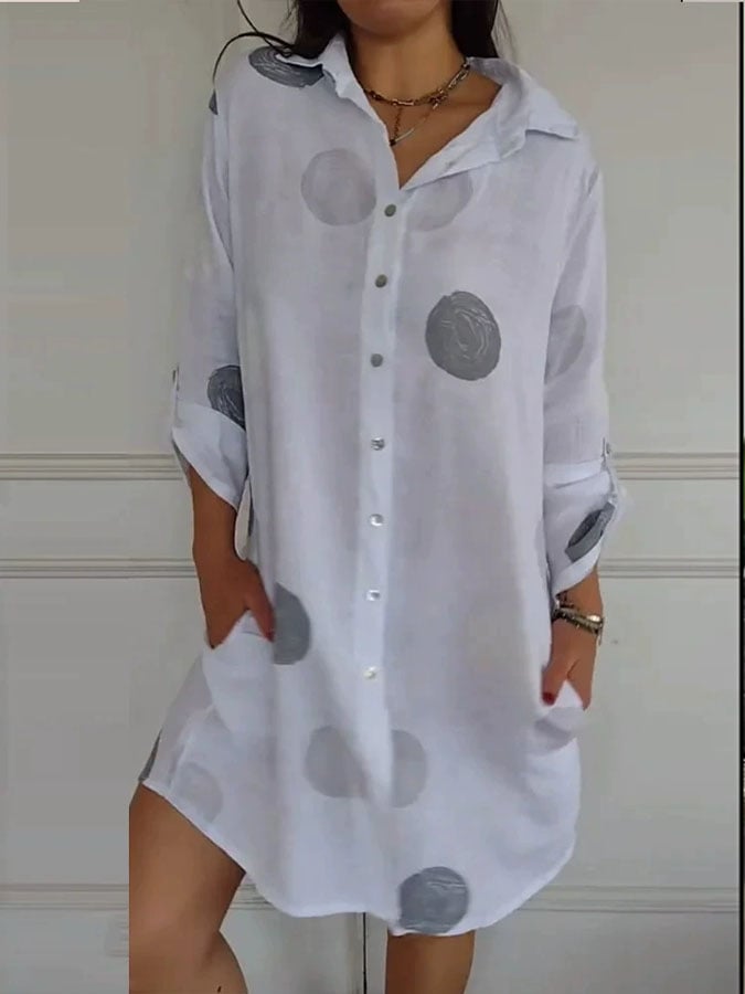 Women's Casual Lapel Long Sleeve Polka Dot Printed Shirt Dress