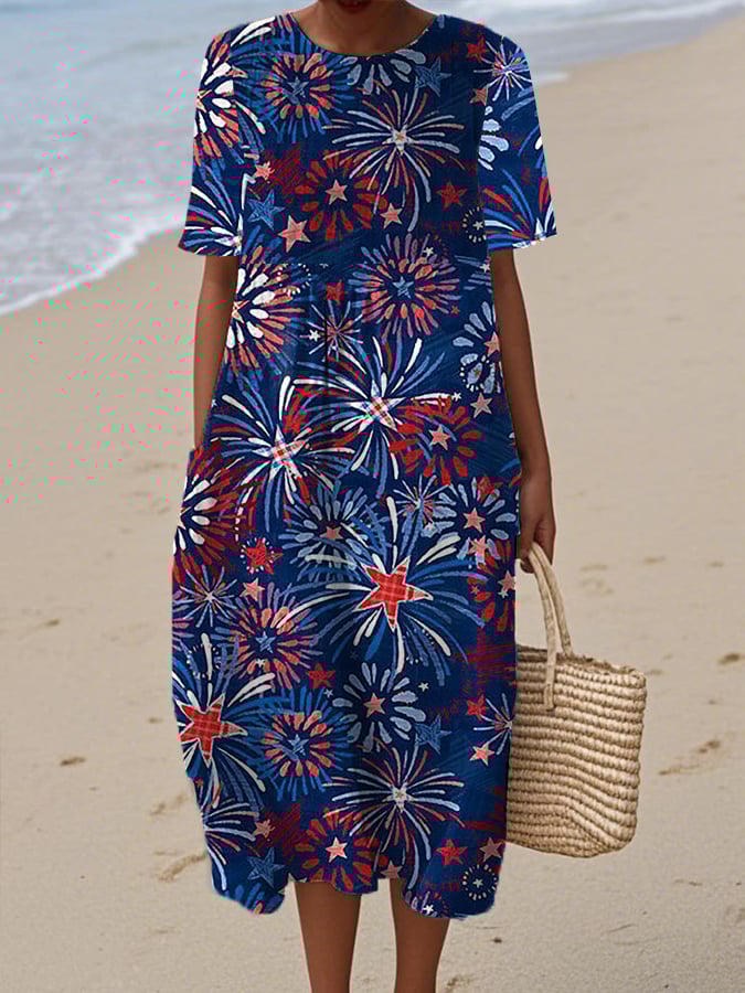 Women's Casual Loose Independence Day Short-Sleeved Dress