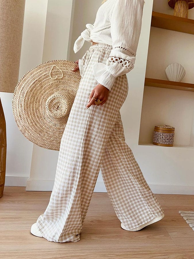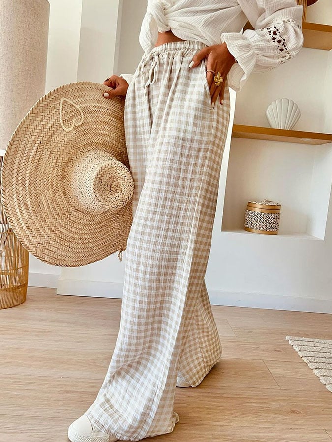 Women's Casual Plaid Comfortable Wide Leg Pants