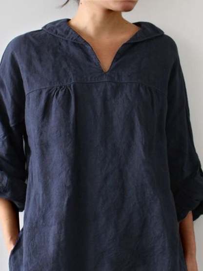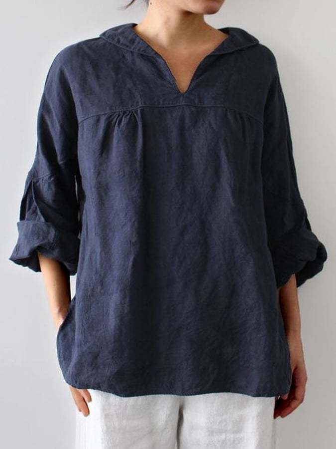 Women‘s Casual Pure Color Elegant Lapel Collar Shirt