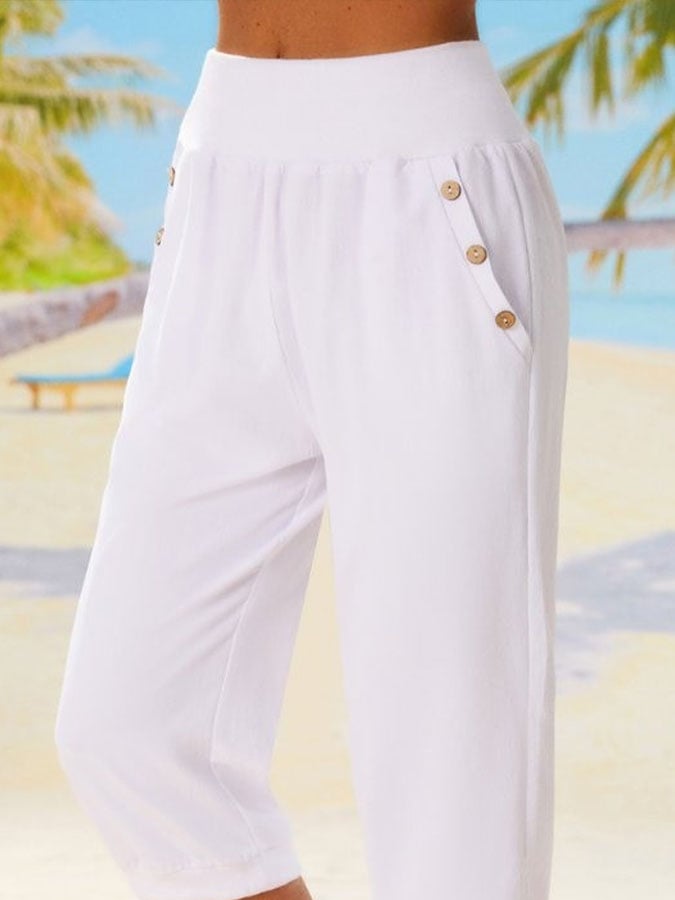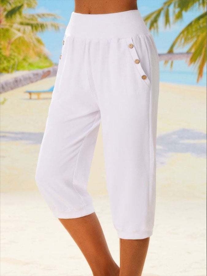 Women's Casual Solid Color Button Capri Pants