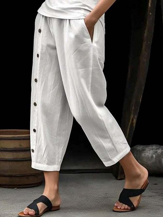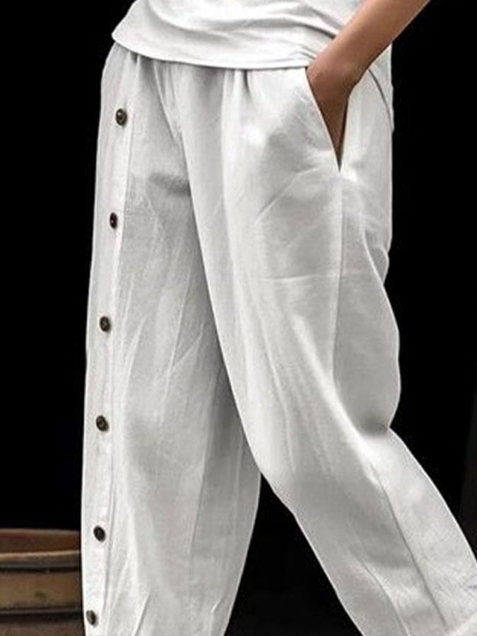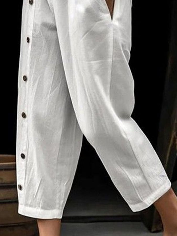 Women's Casual Solid Color Button Trousers