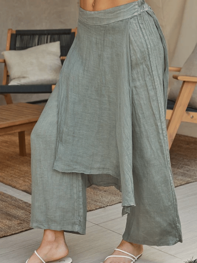 Women'S Casual Solid Color Elastic Waist Cotton And Linen Trousers