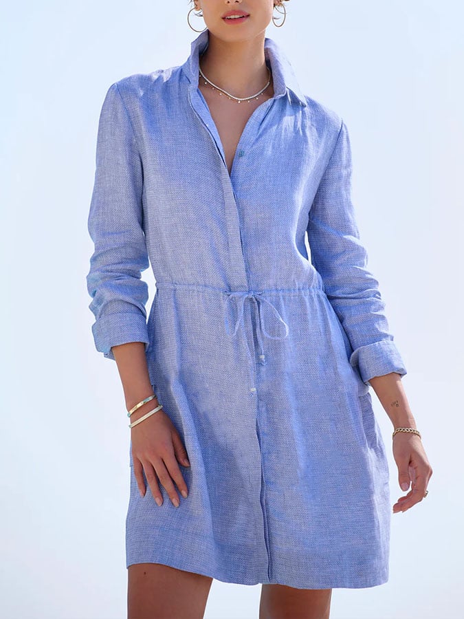 Women's Casual Solid Color Lapel Short Sleeve Button Dress