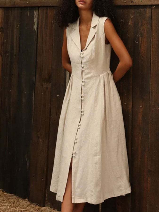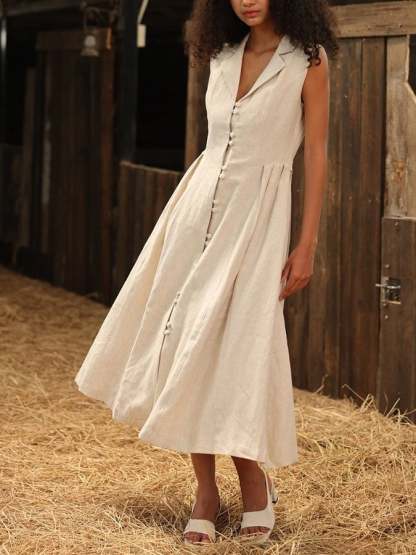 Women's Casual Solid Color Lapel Sleeveless Button Dress