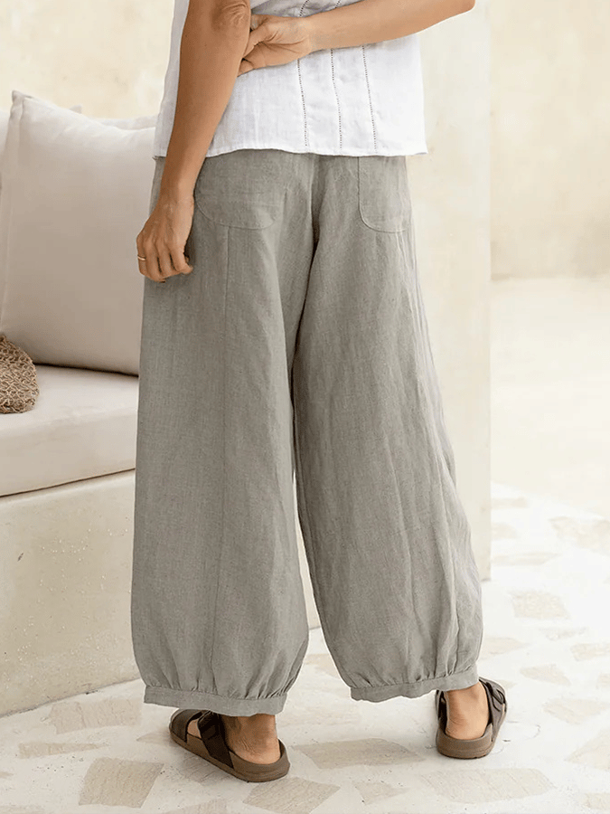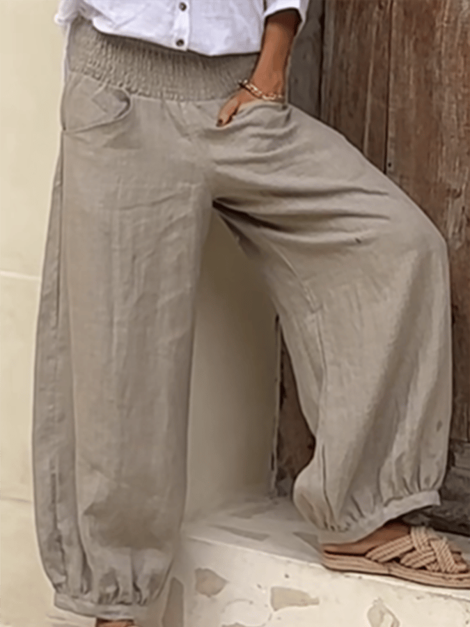 Women'S Casual Solid Color Loose Elastic Waist Cotton And Linen Trousers