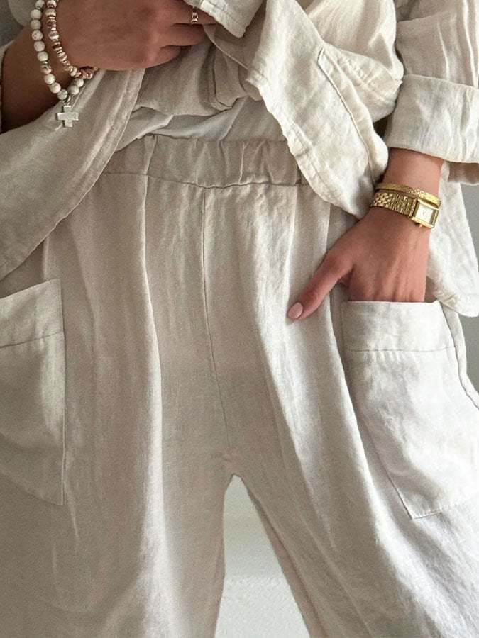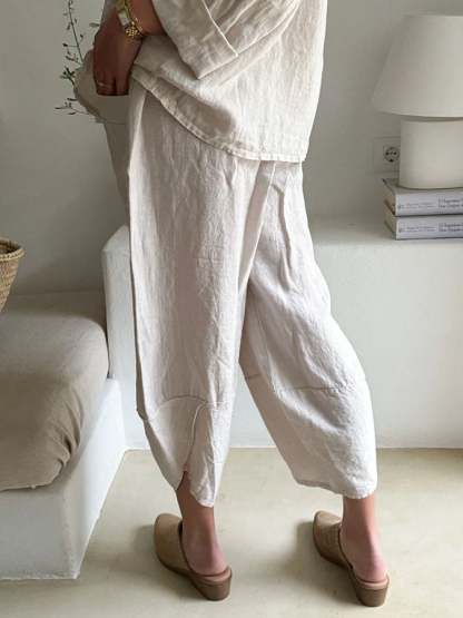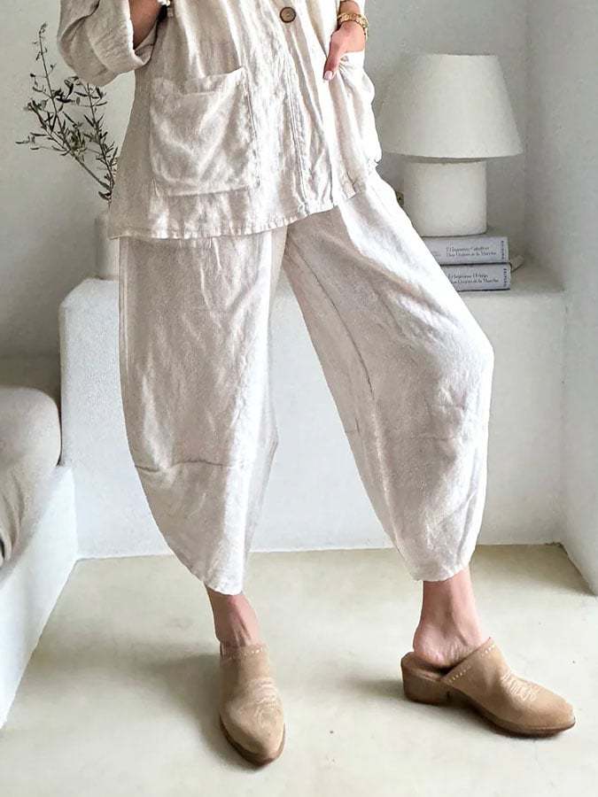 Women's Casual Solid Color Pocket Cotton and Linen Cropped Pants