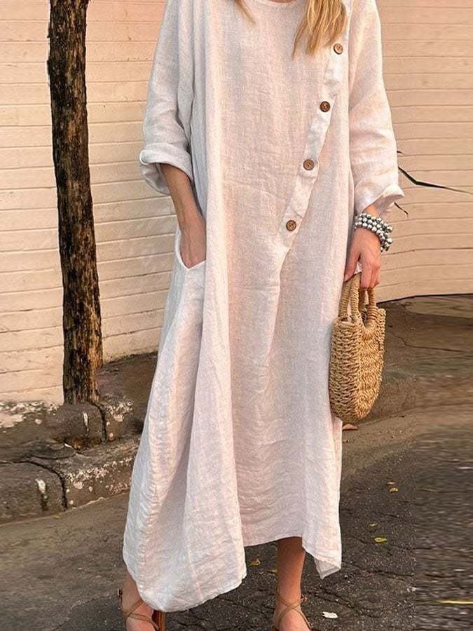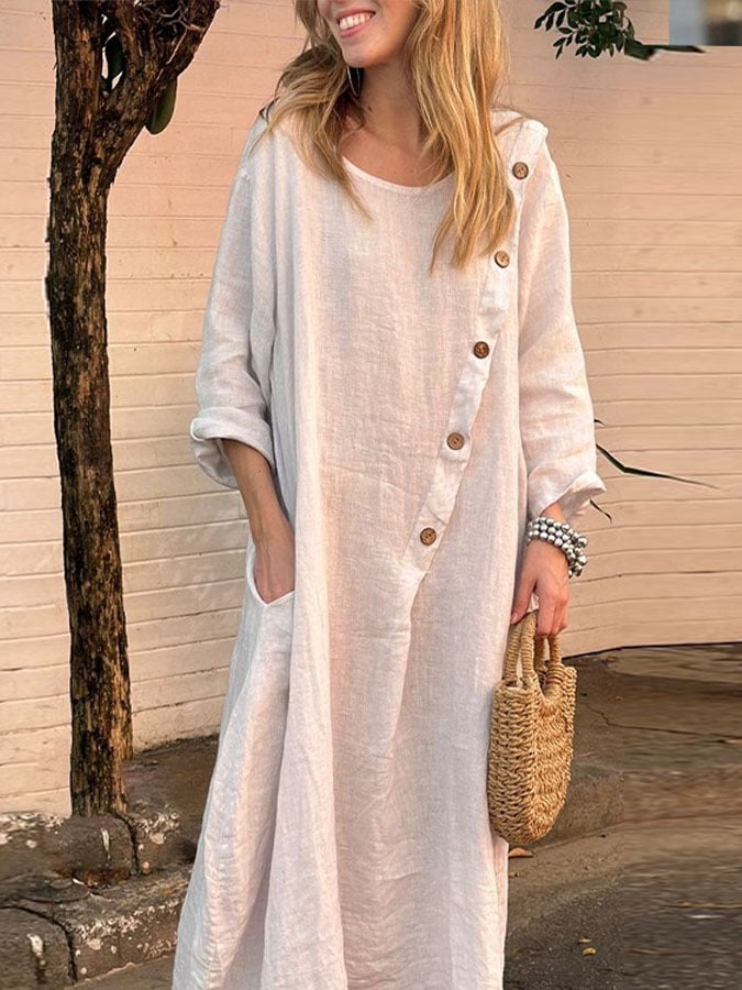 Women's Casual Solid Color Round Neck Long Sleeve Button Dress