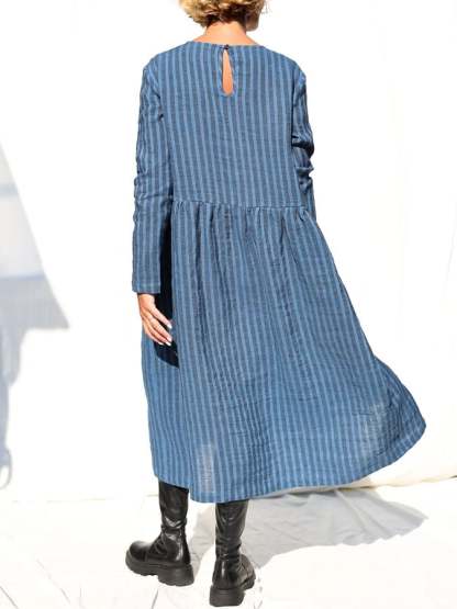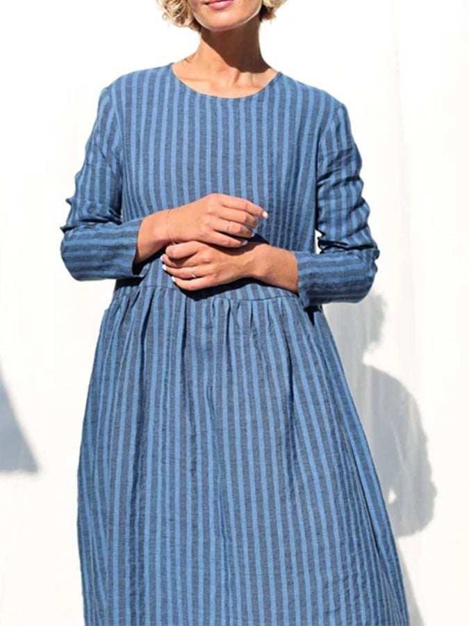 Women's Casual Solid Color Round Neck Long Sleeve Striped Print Dress