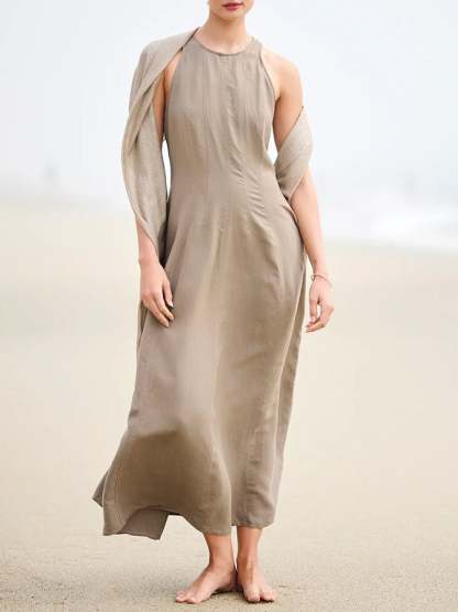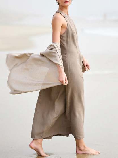 Women's Casual Solid Color Round Neck Sleeveless Dress