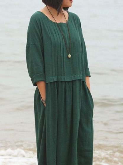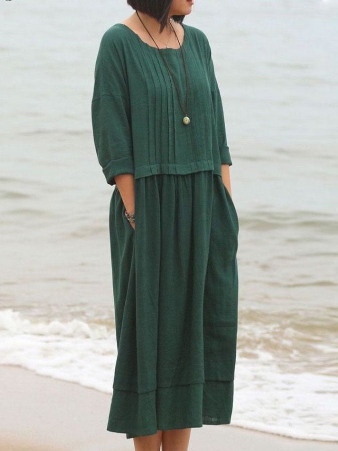 Women's Casual Solid Color Round Sleeve Shirred Dress