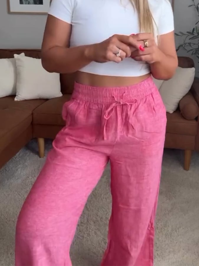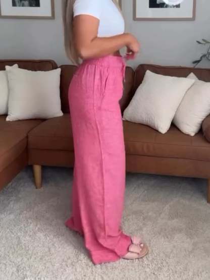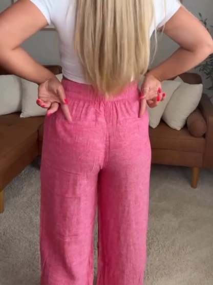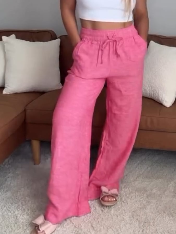 Women's Casual Solid Color Straight Cotton and Linen Pants