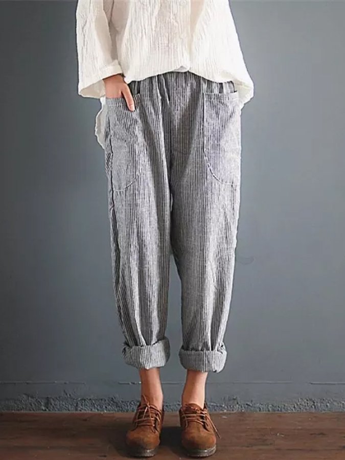Women's Casual Striped Cotton Pants