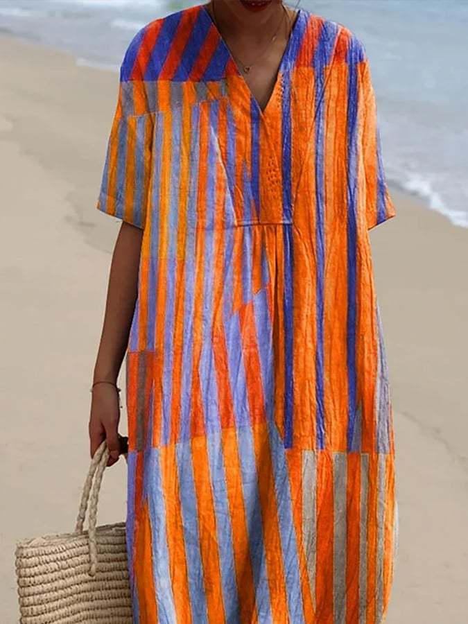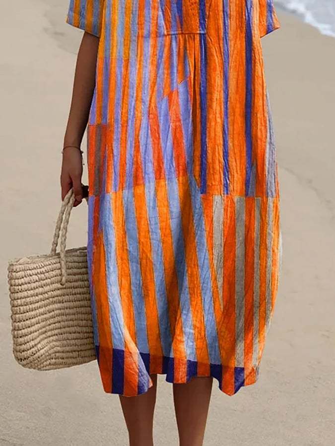 Women's Casual Striped Graphic Print Loose Dress