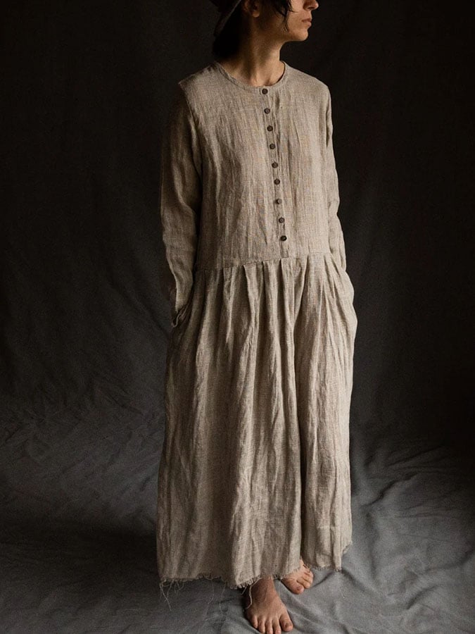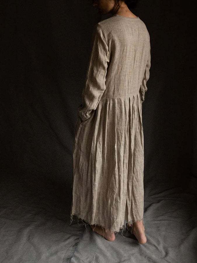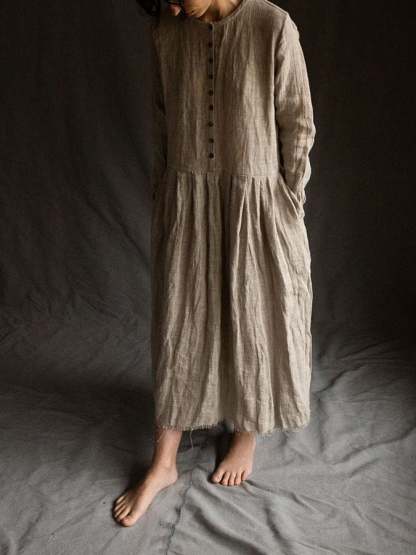 Women'S Casual Vintage Natural Cotton And Linen Dress