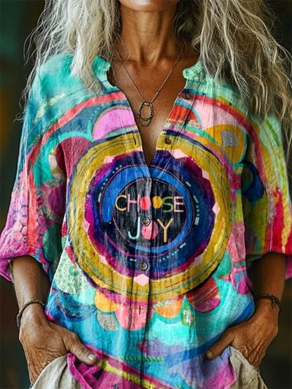 Women's Choose Joy Graphic Art Print Casual Cotton Pocket Shirt