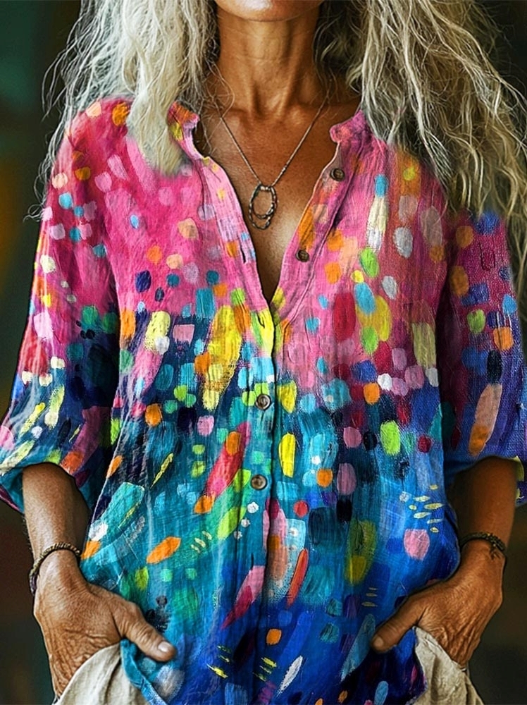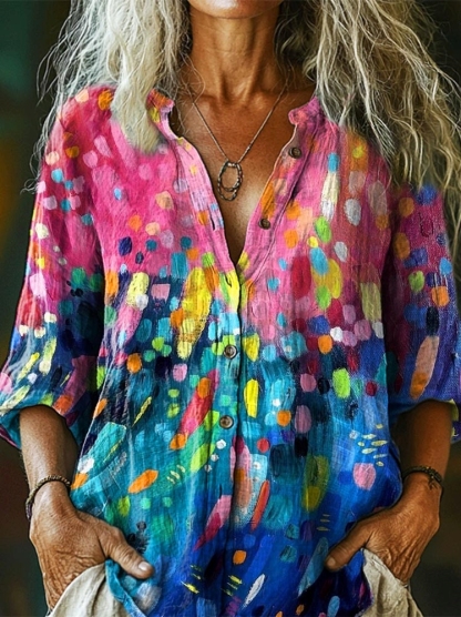 Women's Colorful Graffiti Art Print Casual Cotton Linen Shirt