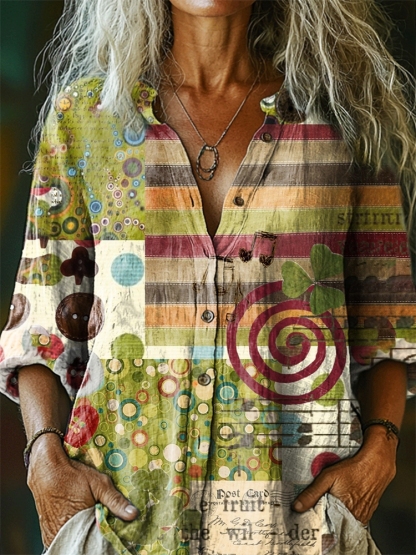 Women's Colorful Irregular Pattern Art Print Casual Cotton Linen Shirt